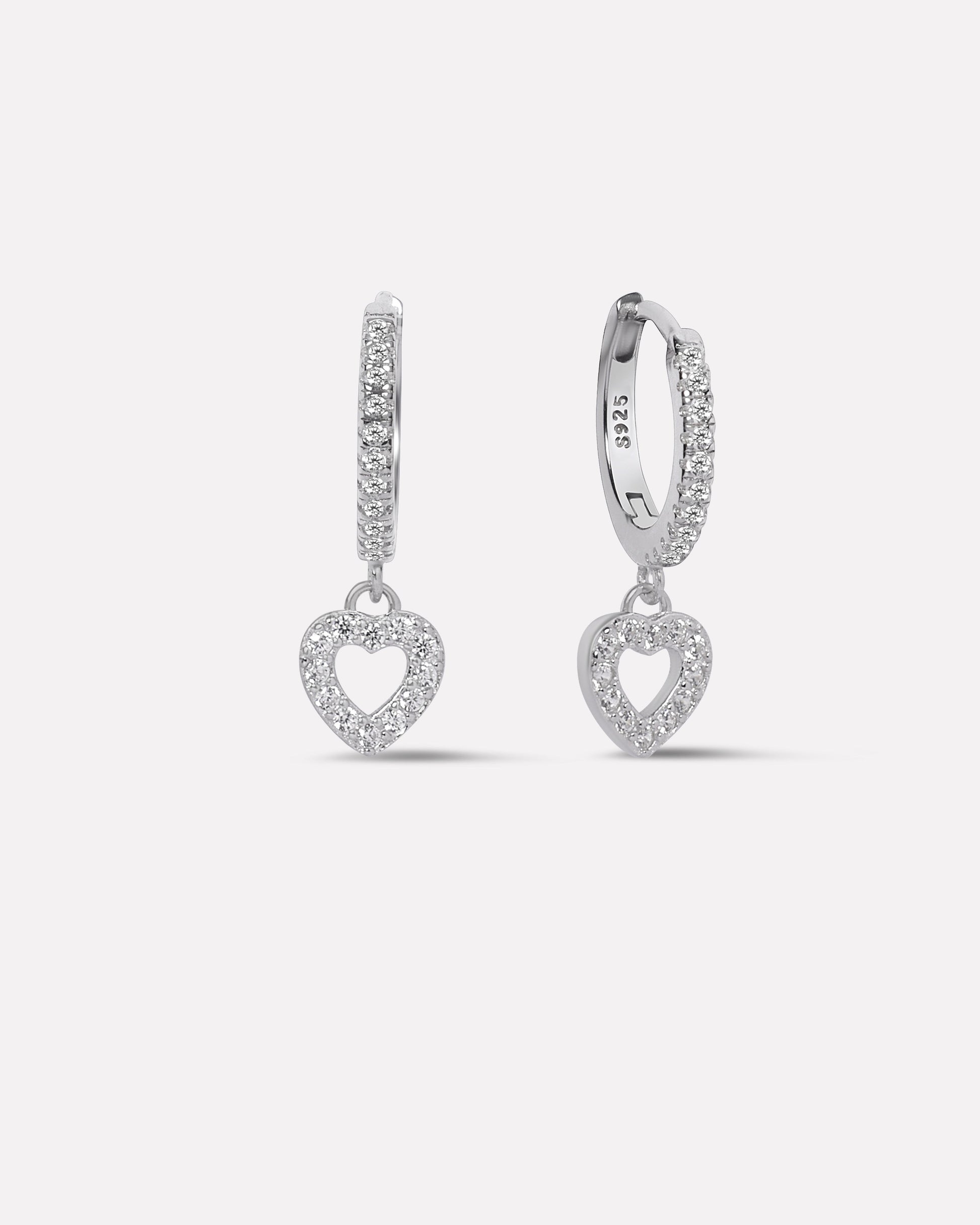 Romantic pave heart hoop earrings in 92.5 silver, rhodium plated with sparkling 5A+ zirconia stones. Perfectly encircling the hoop, the heart design delivers a delicate shimmer, making these hoops ideal for gifting or enhancing everyday and special occasion looks.