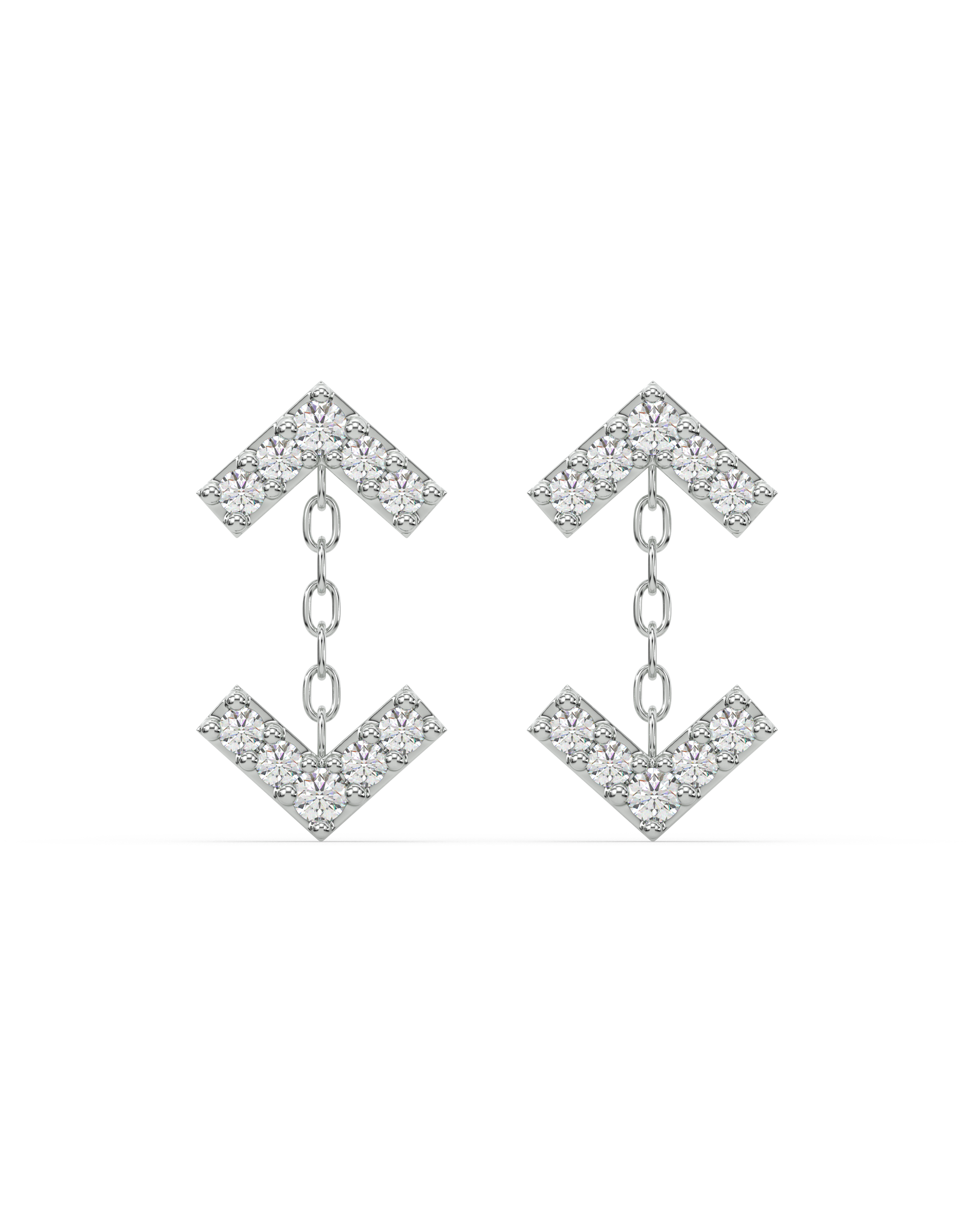Inverse Arrow Stud Earrings in 92.5 silver with 5A+ zirconia stones and rhodium plating. A stylish arrow design with inverted brilliance, offering edgy modern elegance for versatile everyday jewelry styling.
