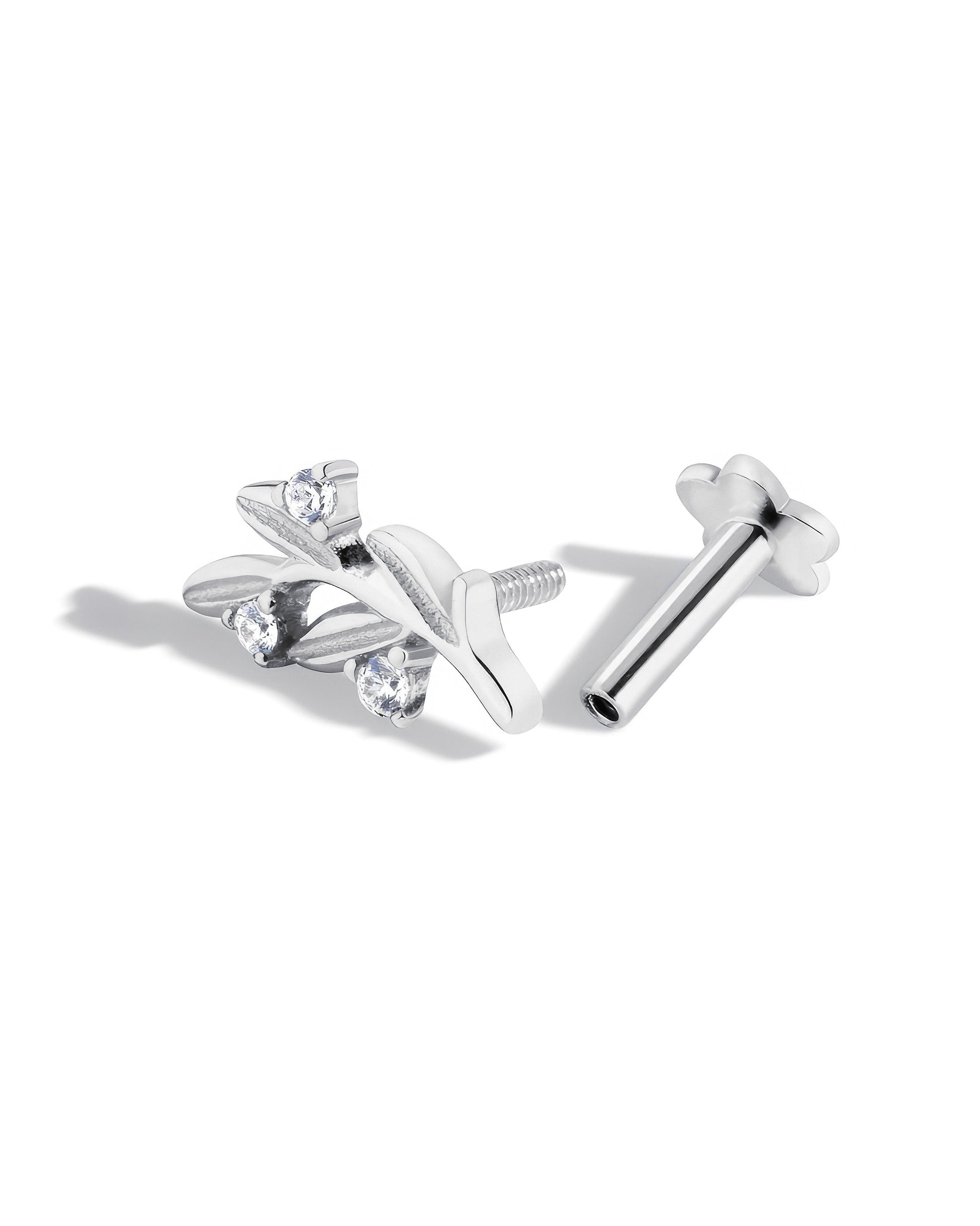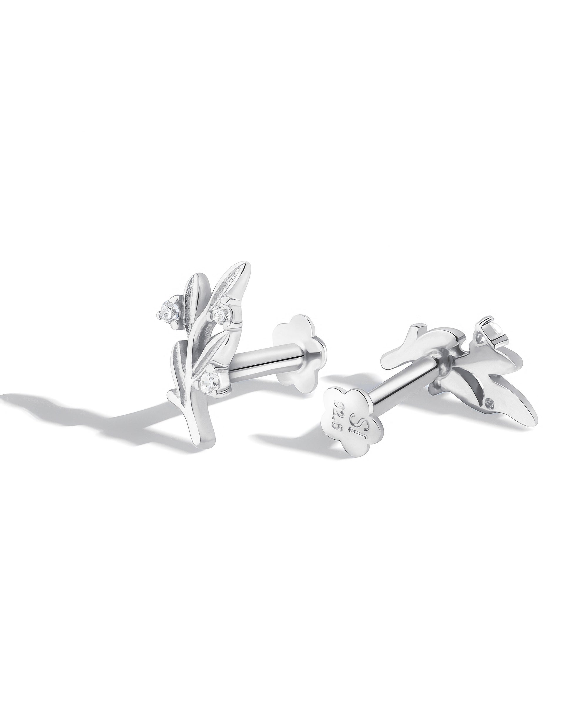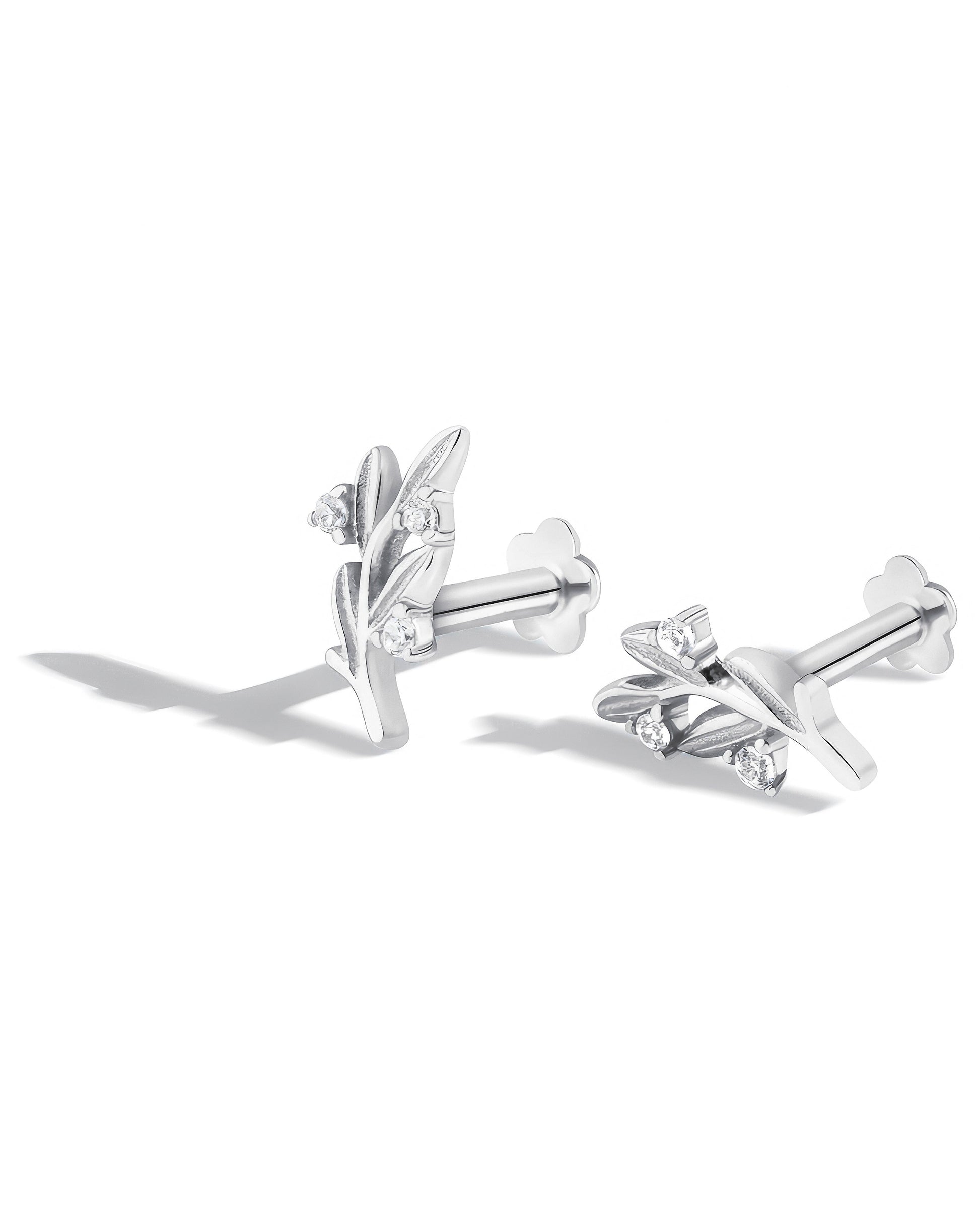 Leaflet Sparkle Flatback Stud Earrings - Silver