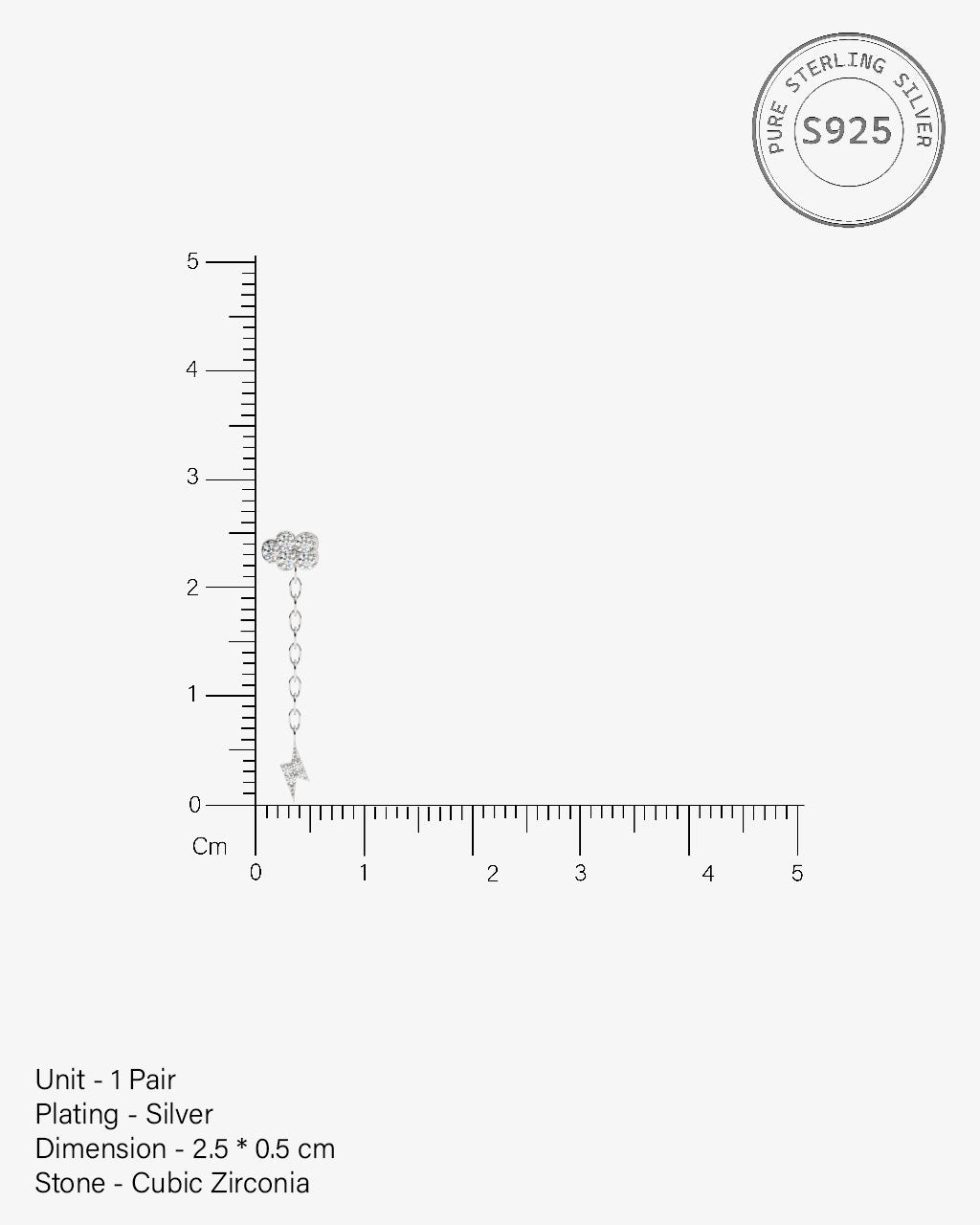 Lightning Zirconia Stud Earrings in 92.5 silver with rhodium plating. Bold and edgy, sparkling stones enhance the dynamic lightning design for statement style.