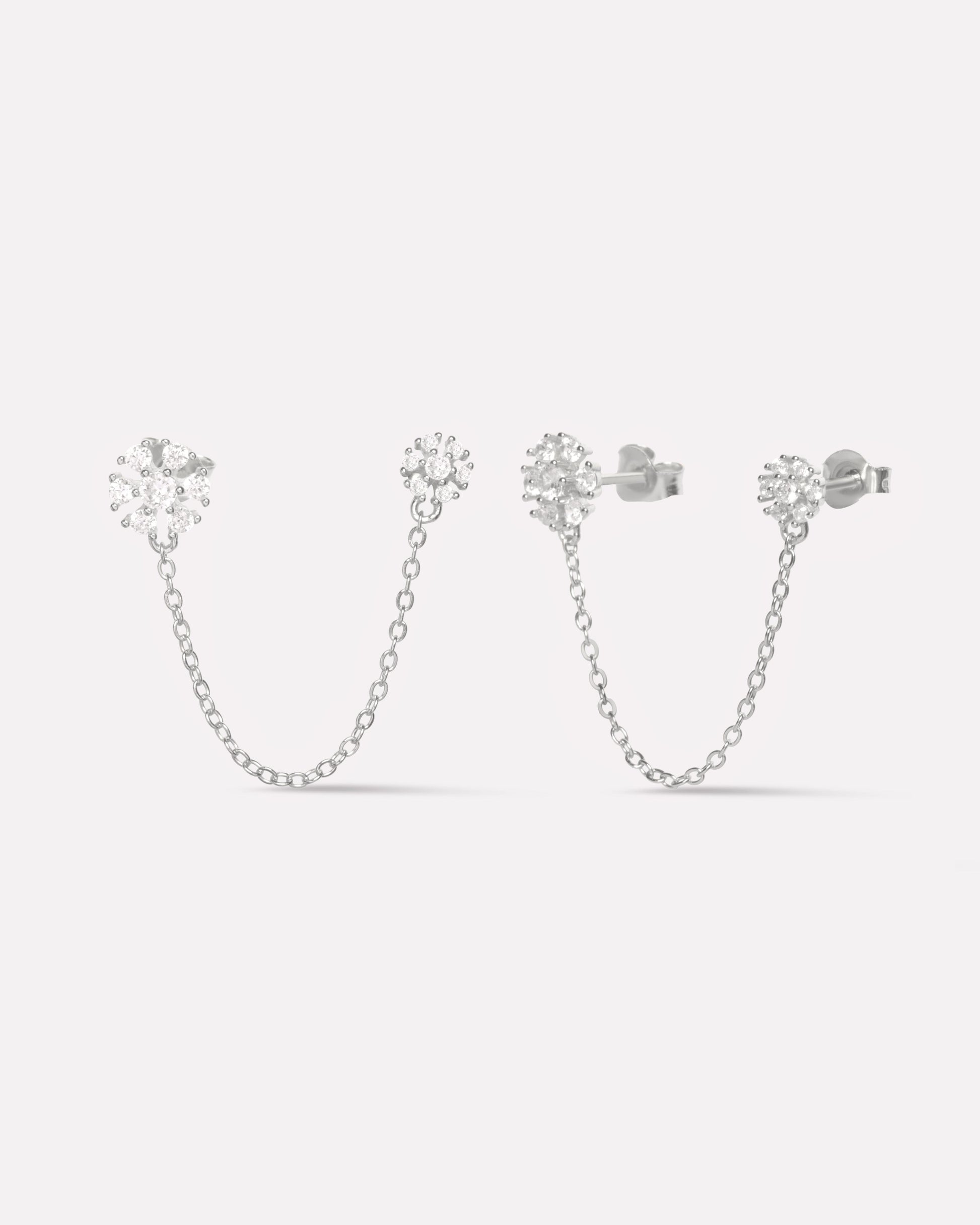 Marcella Chain Connector Earrings in 92.5 sterling silver with 5A+ zirconia stones. Rhodium plated for lasting shine, these elegant chain earrings feature sparkling stones and modern design, ideal for daily wear or gifting.
