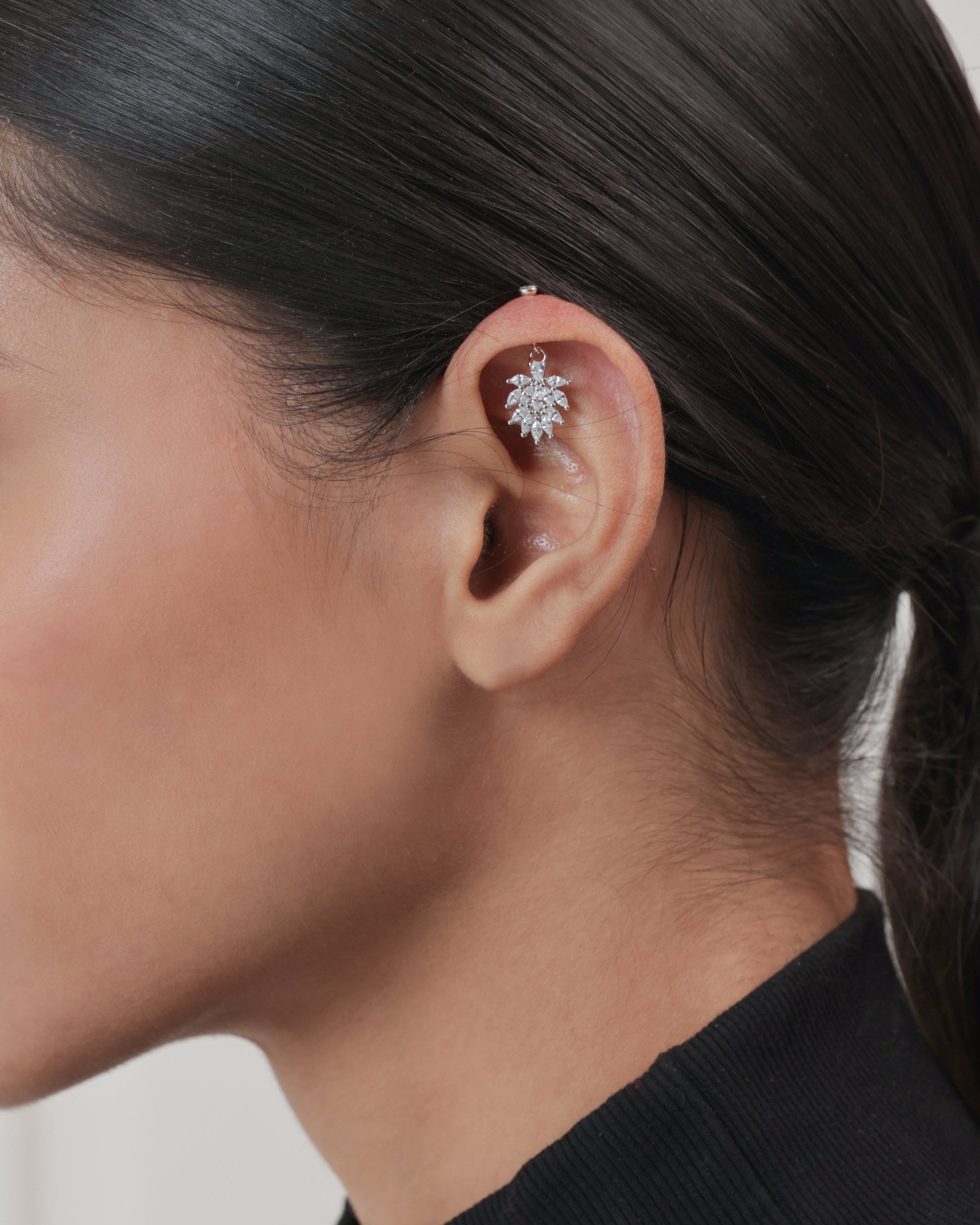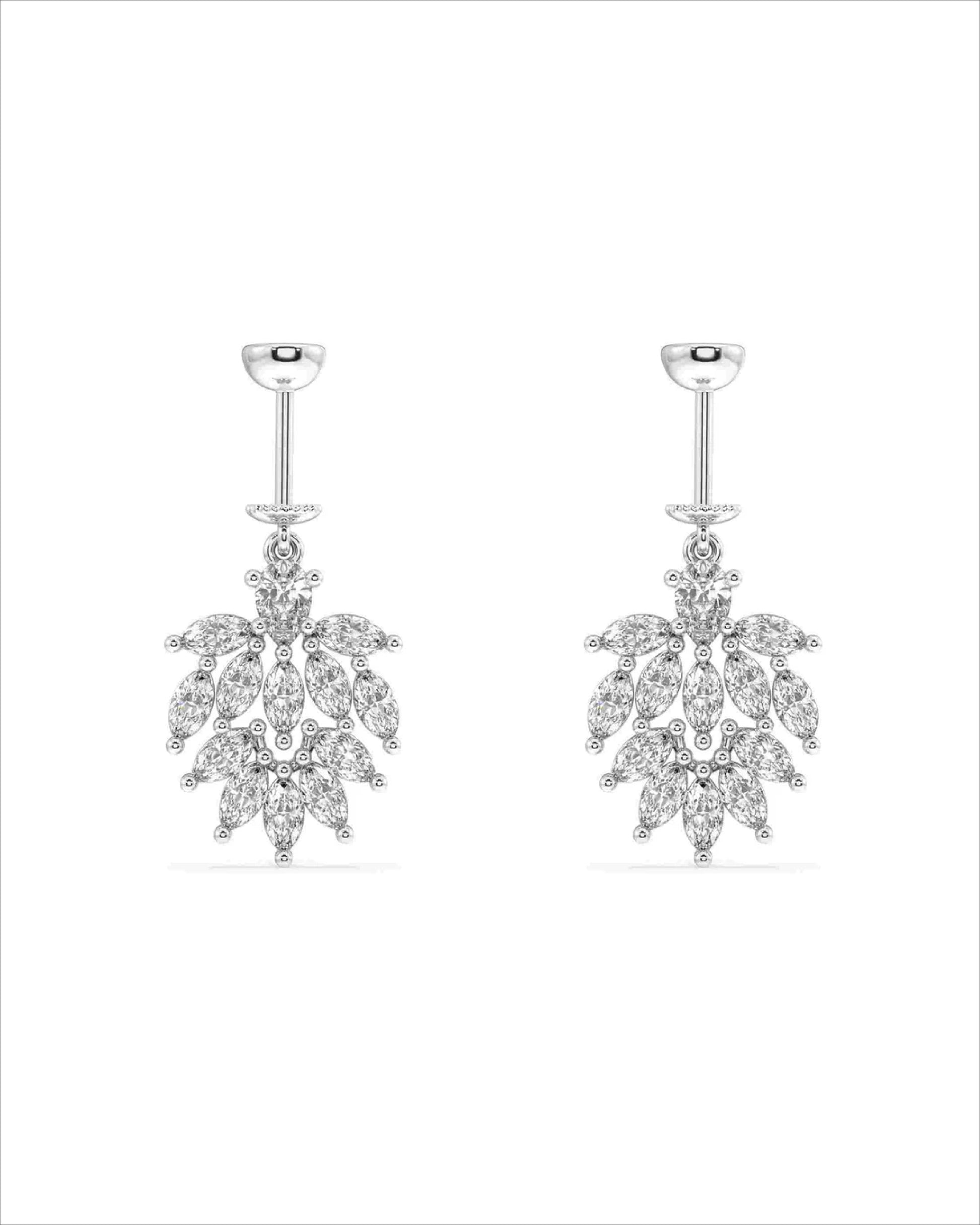 Marquise Flow Helix Hanging Earrings in 92.5 sterling silver with rhodium plating and 5A+ zirconia stones. Flowing marquise shapes add graceful sparkle, fluid movement, and refined elegance to helix piercings, perfect for layering, gifting, or creating a delicate, eye-catching ear statement.