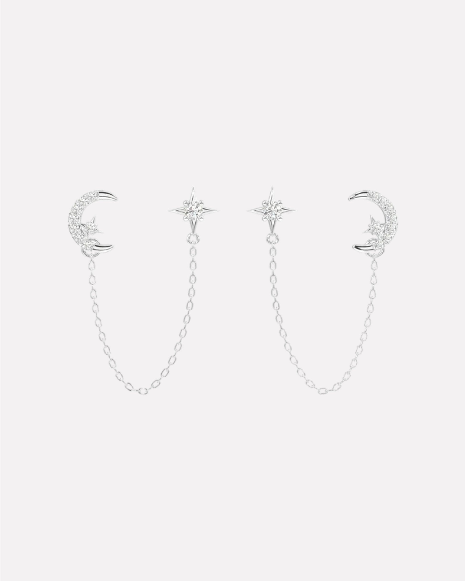 Moon Star 3 In Connector Chain Earrings