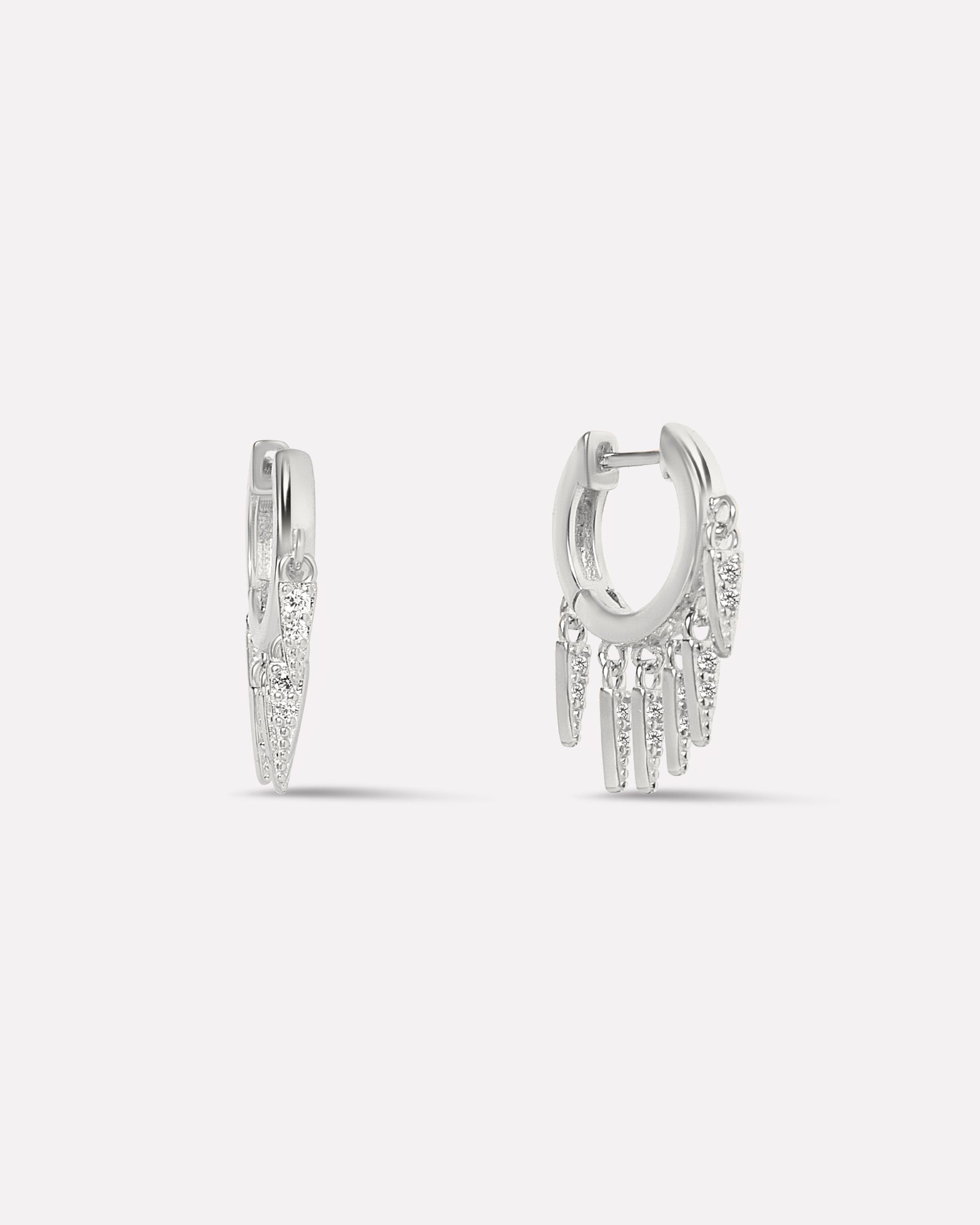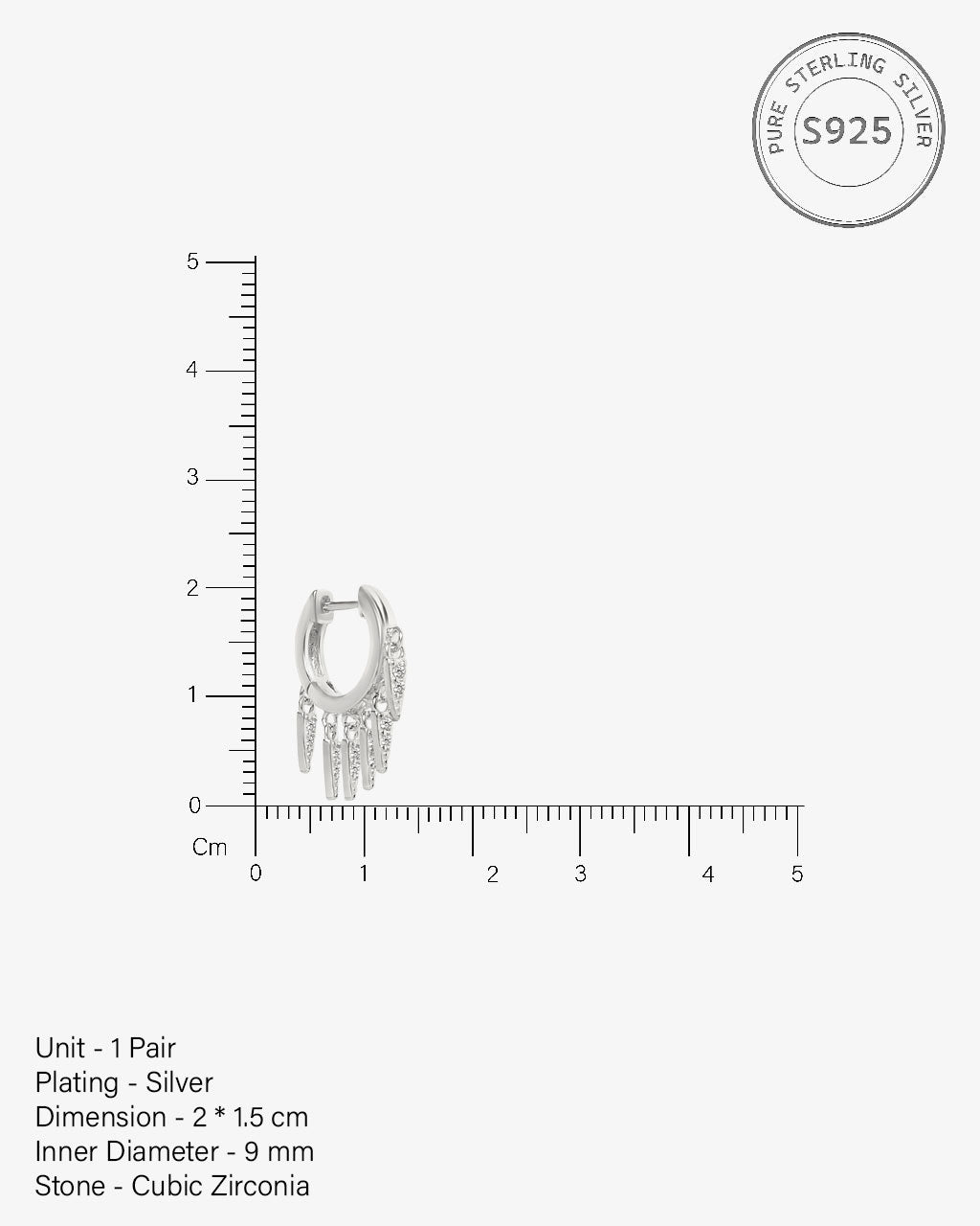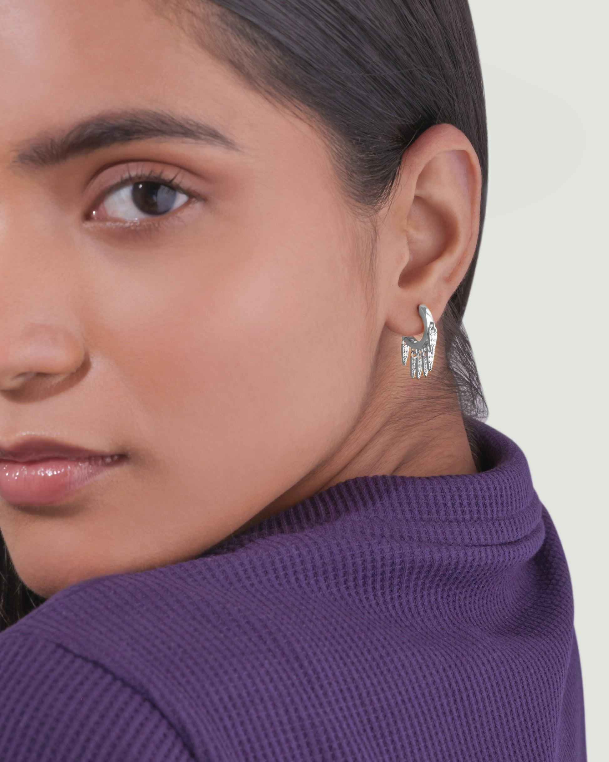 Trendy Multi Bar Charm hoops in 92.5 silver, rhodium plated with 5A+ zirconia stones. The stacked bar design adds modern shimmer and charm, perfect for layering, gifting, or elevating everyday outfits.
