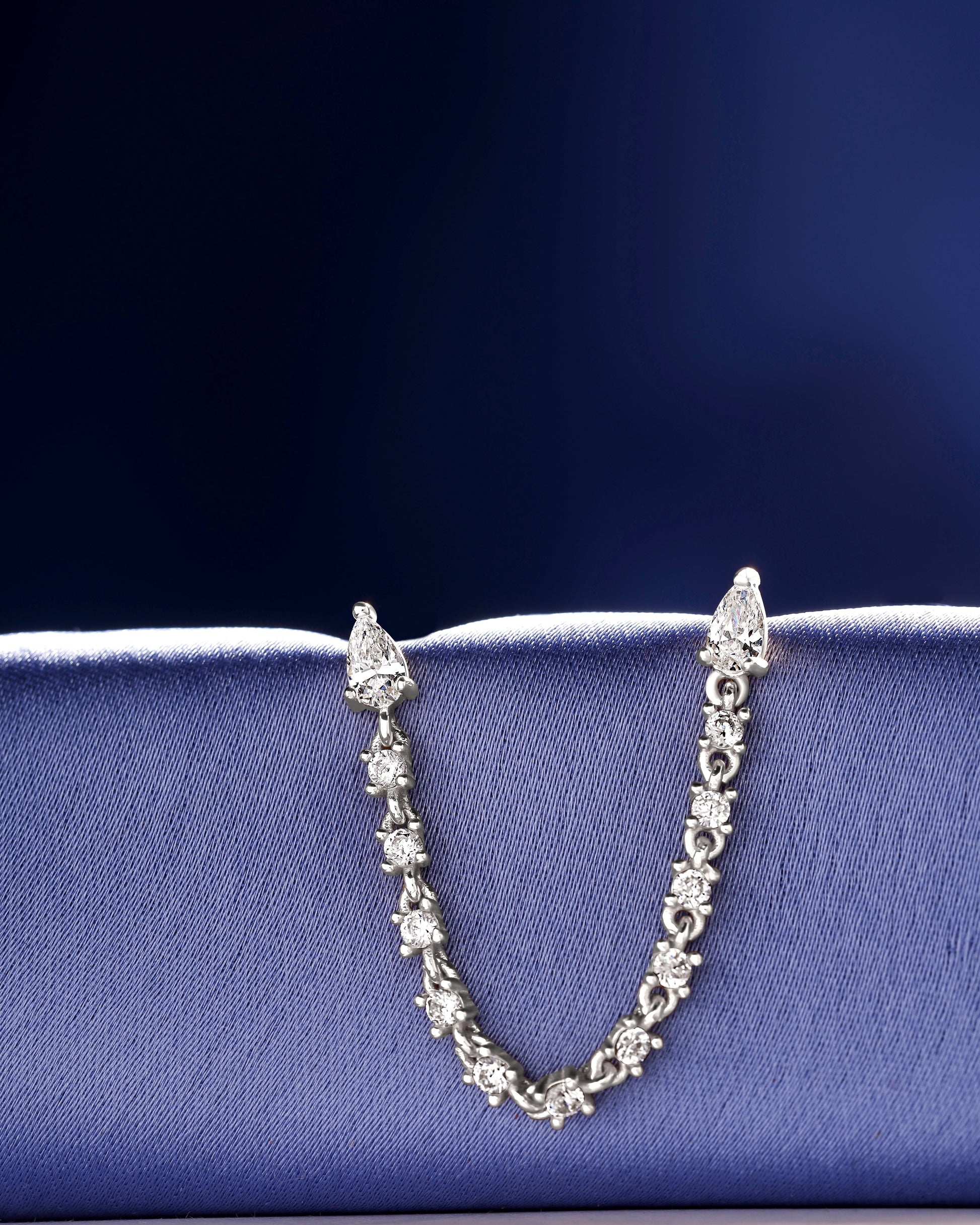 Luxury Multi Stone Connector Chain Earrings in 92.5 sterling silver with 5A+ zirconia stones. Rhodium plated for brilliance, featuring multiple sparkling stones on a sleek chain, perfect for statement style, daily wear, or gifting.