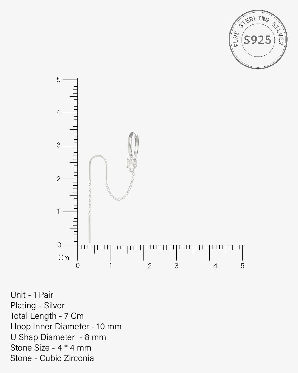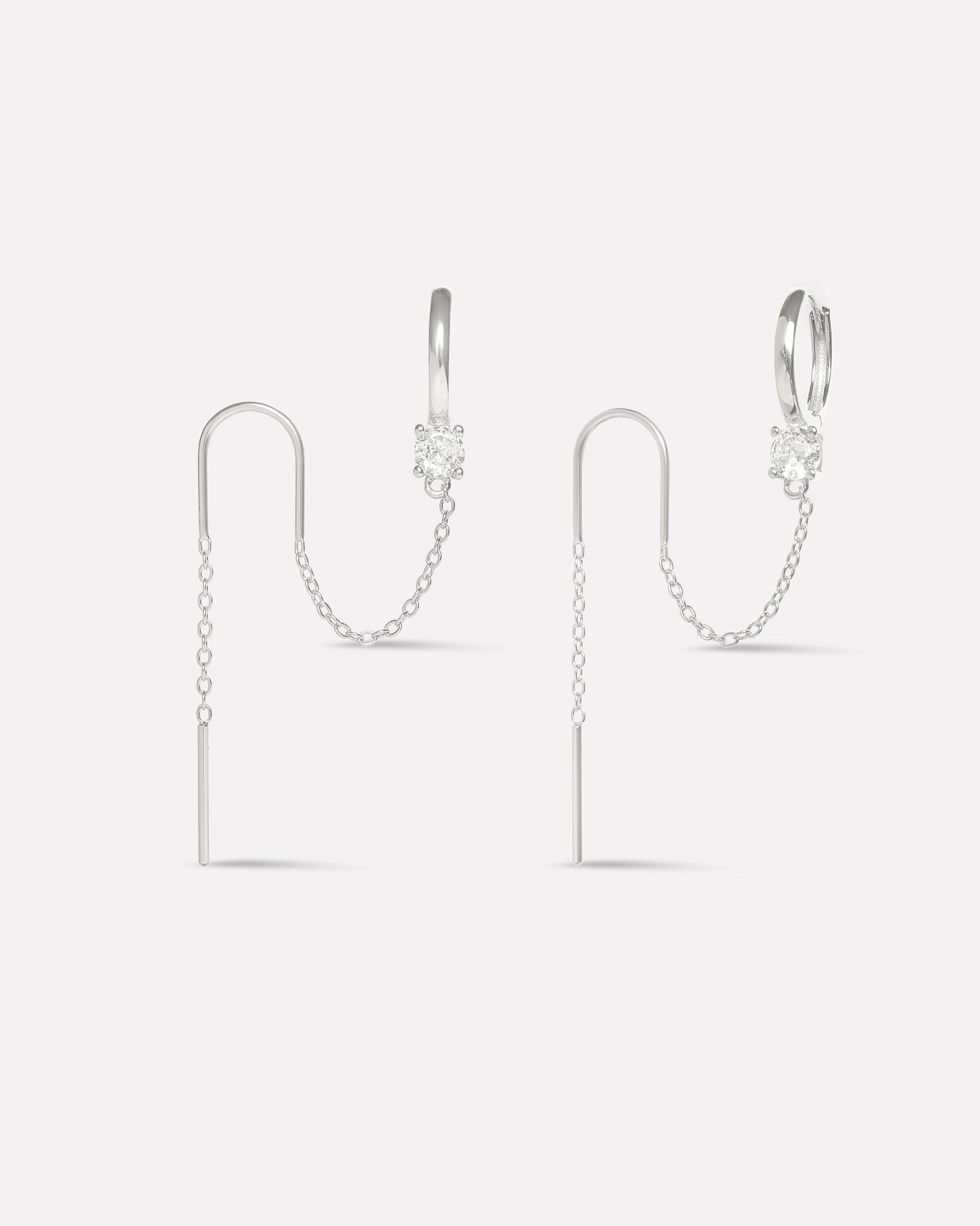 Noelle Chain Connector Earrings in 92.5 sterling silver with 5A+ zirconia stones. Rhodium plated for lasting brilliance, these layered chain earrings feature delicate modern designs, perfect for gifting or everyday elegance.