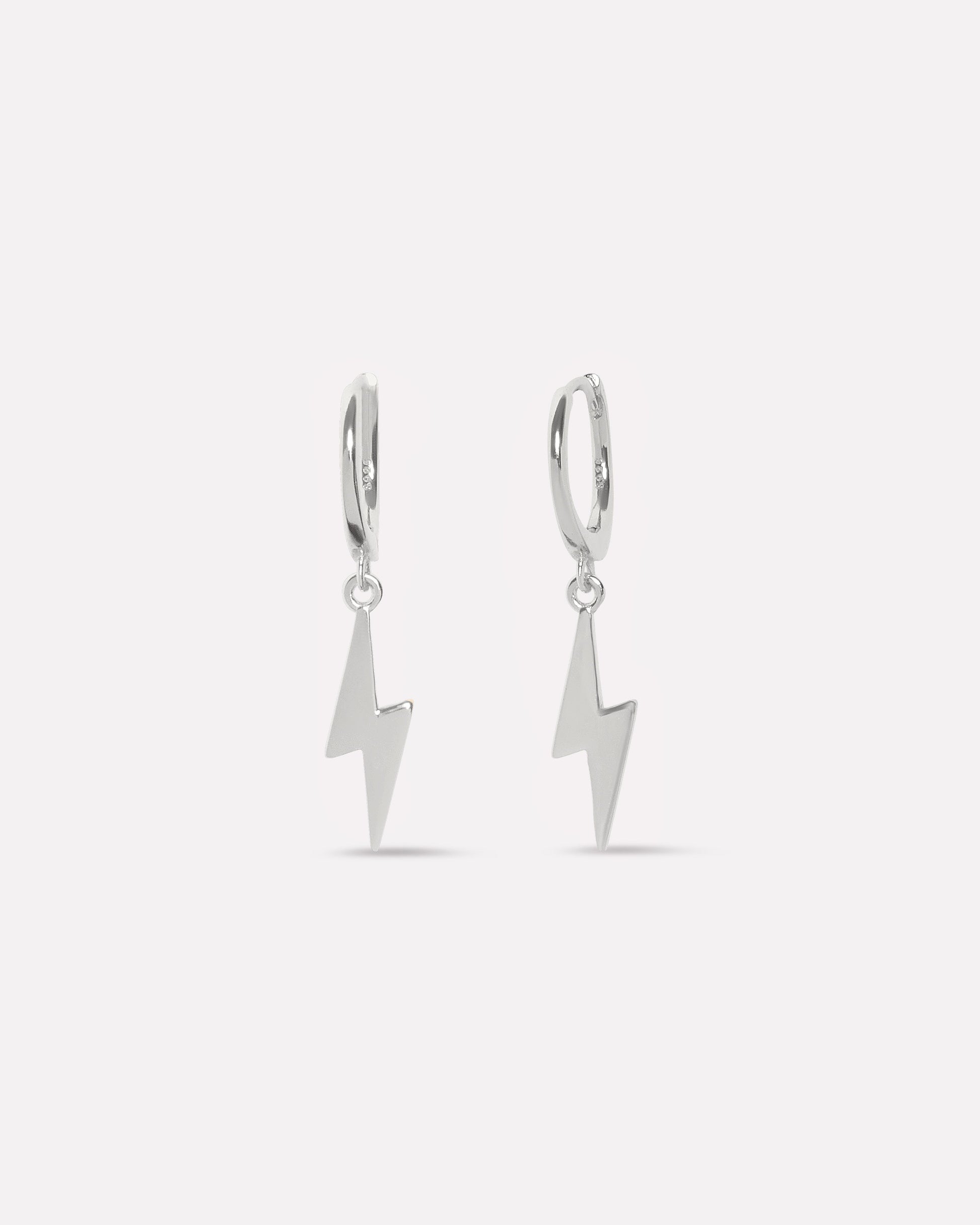 Dainty Thunder Charm Hoop Men's Earrings in 92.5 sterling silver with 5A+ zirconia stones. Rhodium plated for lasting brilliance, these playful yet edgy hoops feature a lightning charm, perfect for statement styling or gifting.
