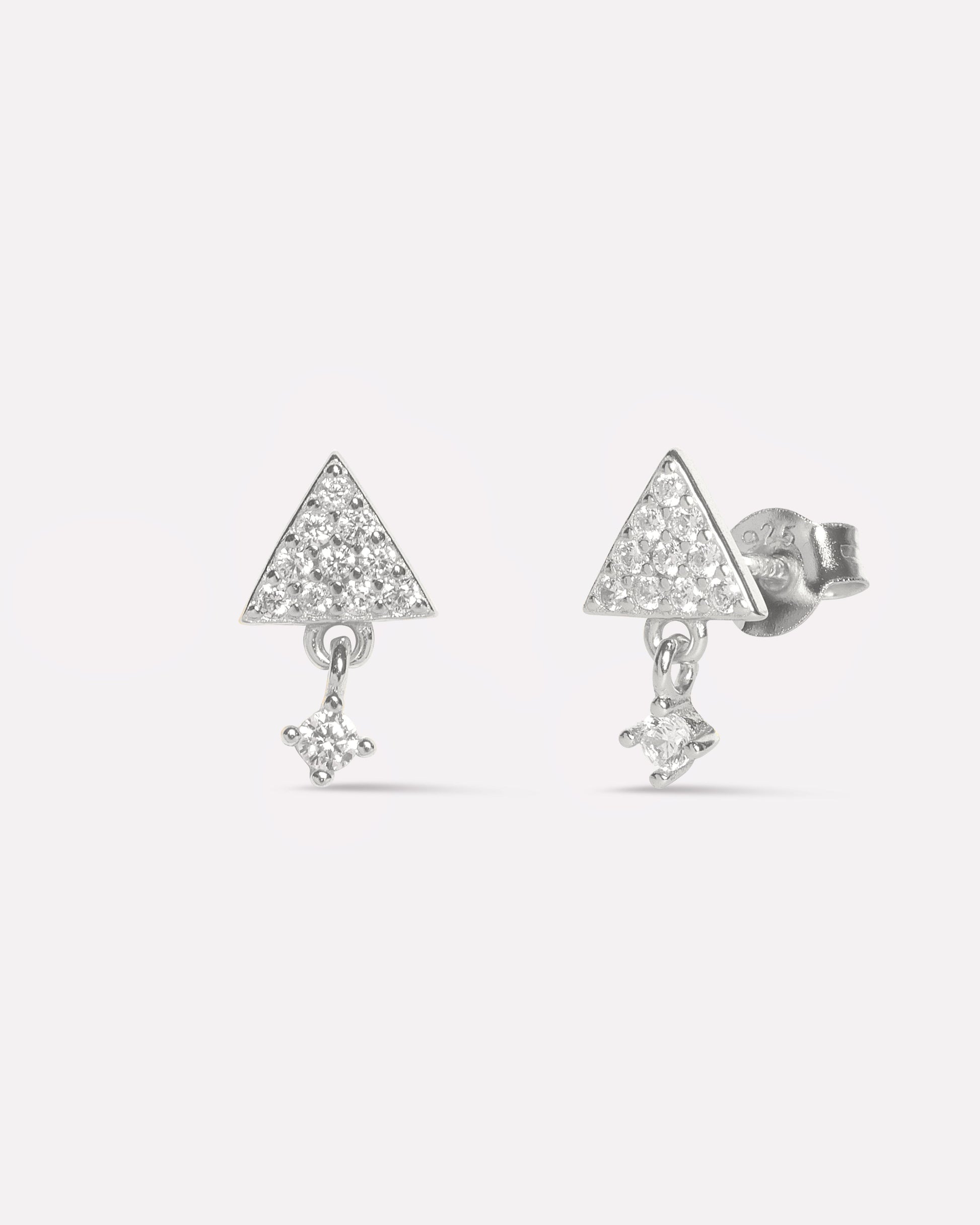 Modern Pyramid Drop Stud Earrings crafted in 92.5 silver with rhodium plating and 5A+ zirconia stones. Sleek geometric design with sparkling accents, perfect for contemporary elegance and statement styling.