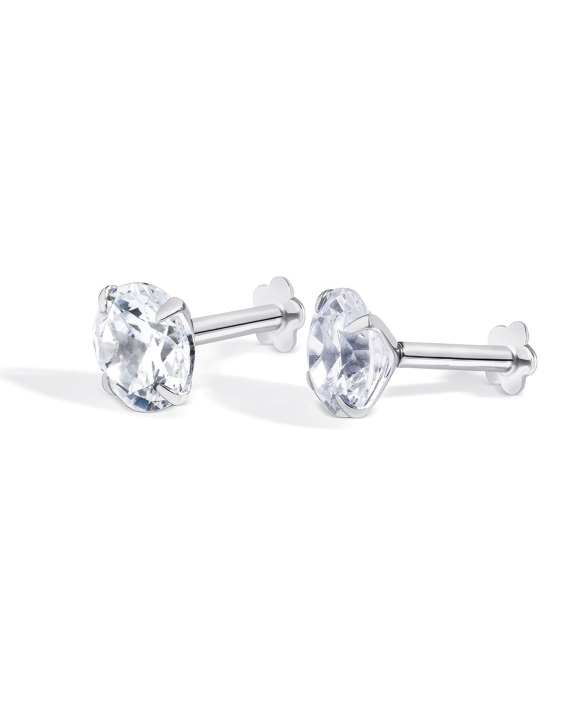 Radiant Round Zirconia Flat Back Stud Earrings