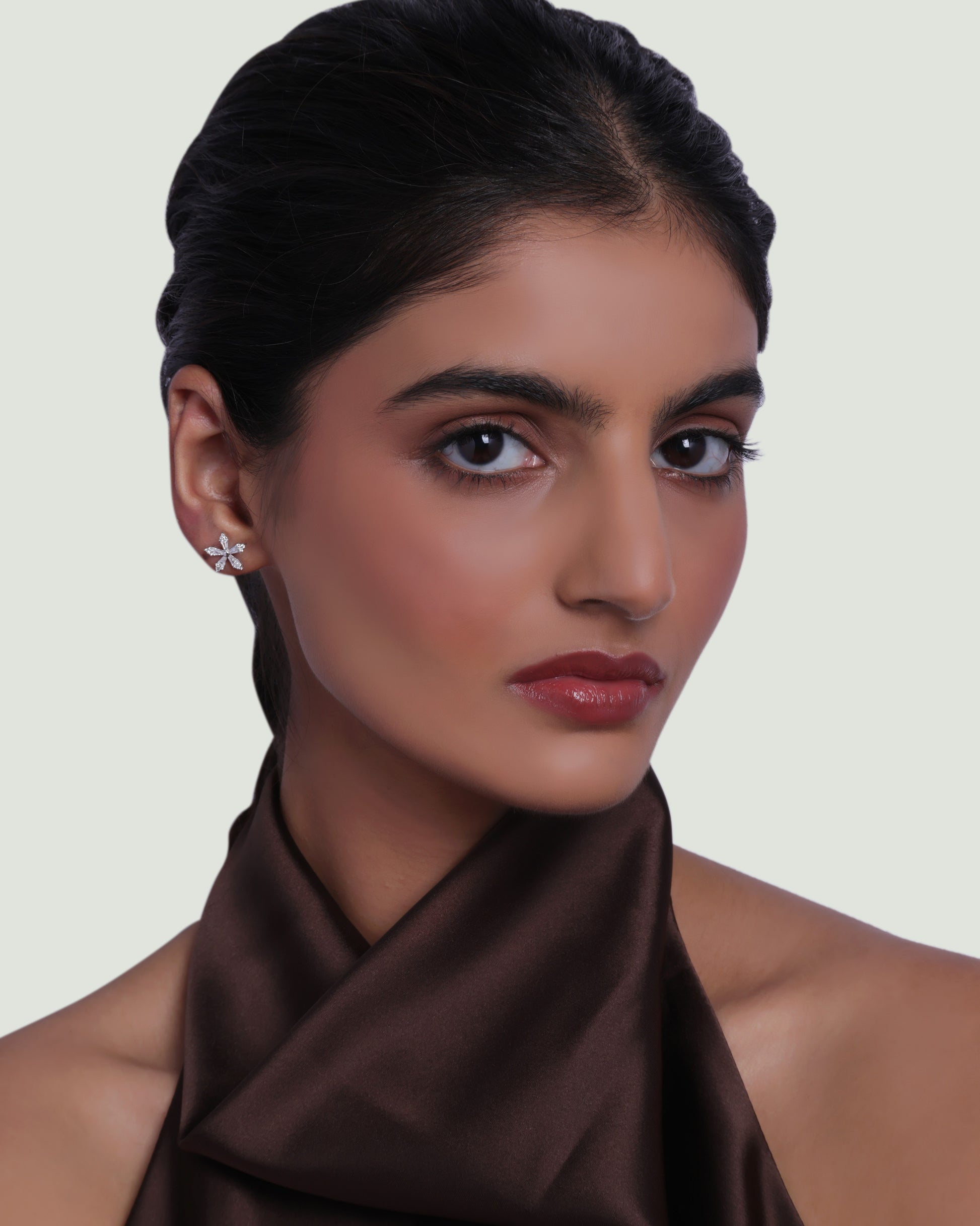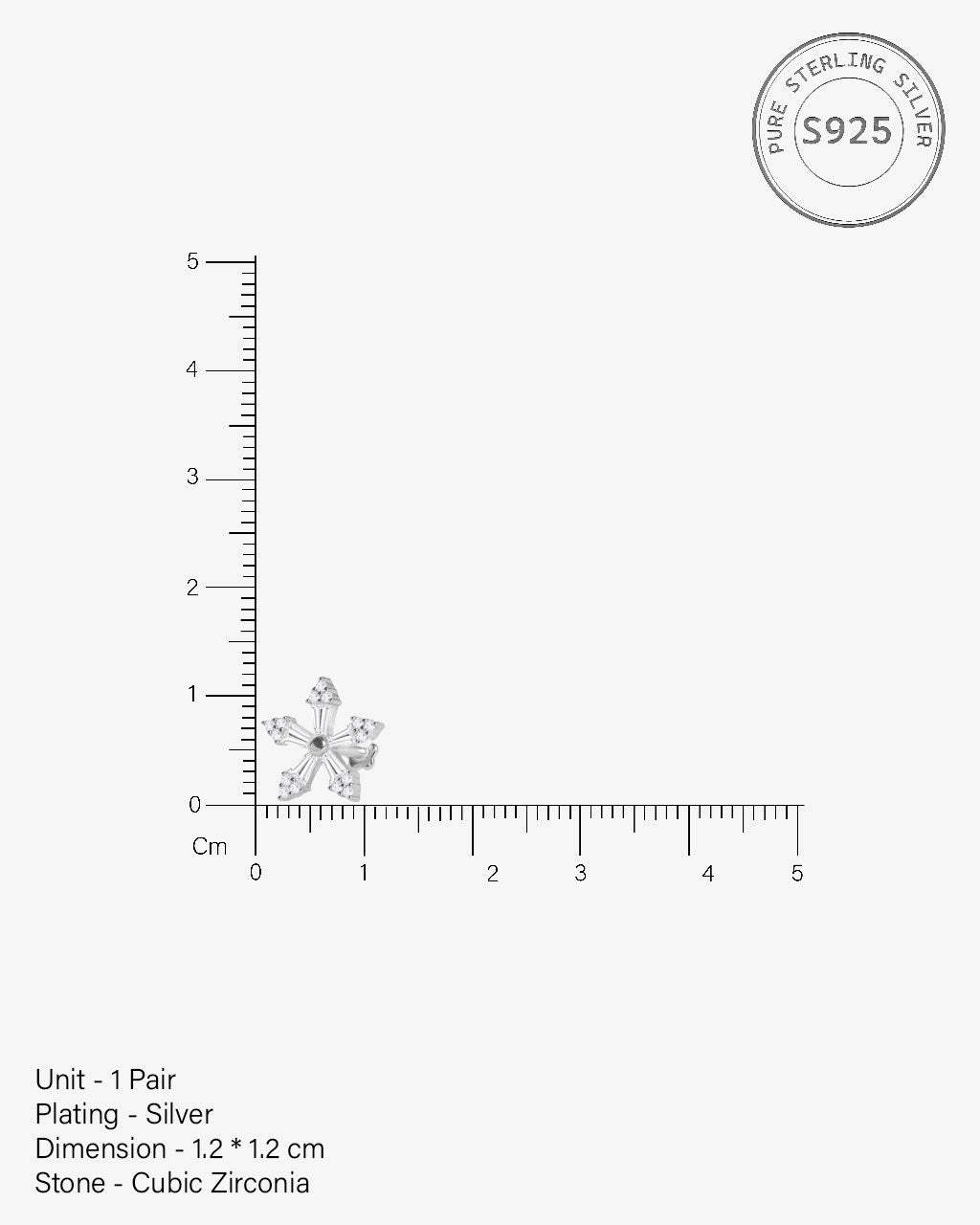 Selestia Flat Back Stud Earrings in 92.5 sterling silver, Rhodium plated, featuring celestial-inspired 5A+ zirconia stones. Perfect for starry-inspired fashion, gifting, or daily sparkle.