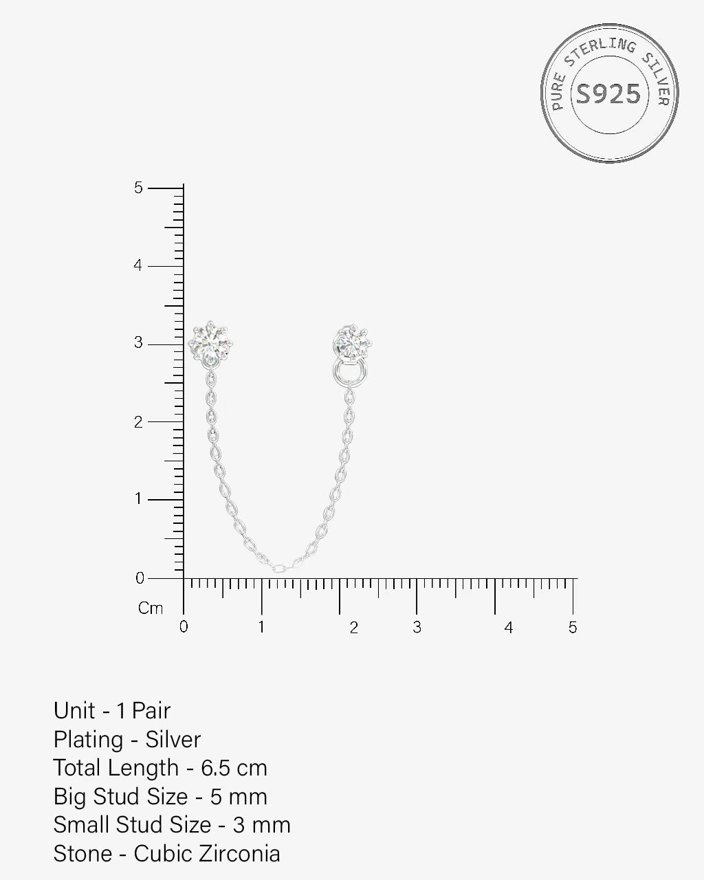 Single Solitaire 3 In 1 Connector Chain Earrings