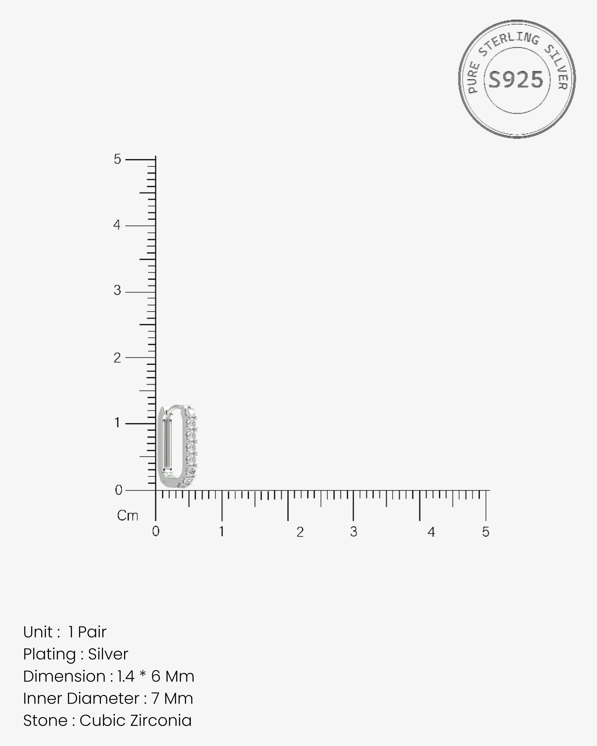 Contemporary Statement Zirconia Square hoops in 92.5 silver, rhodium plated with 5A+ zirconia stones. The square silhouette adds geometric elegance and sophisticated sparkle.