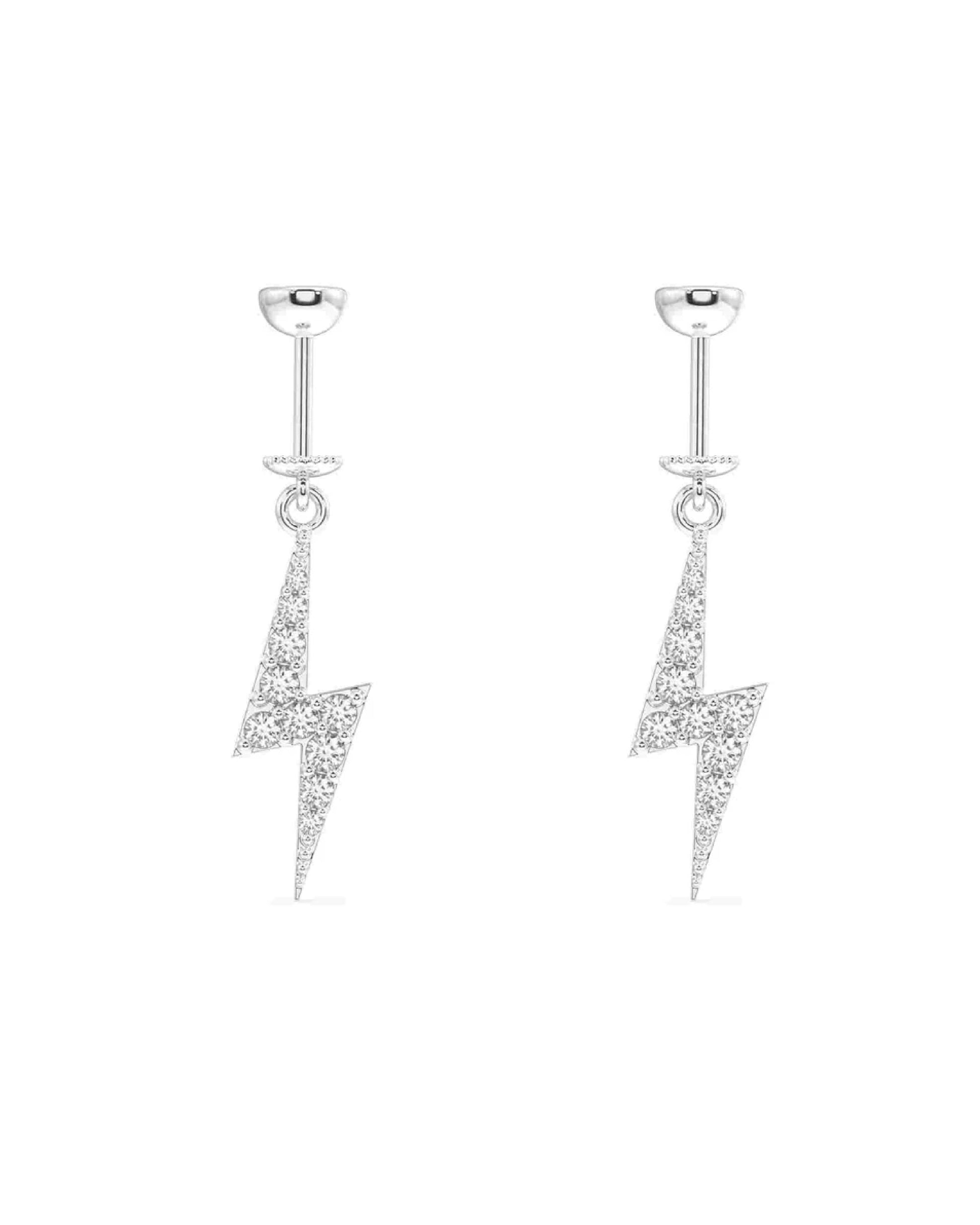 Zircon Studded Thunder Screw Helix Earrings in 92.5 sterling silver with rhodium plating and 5A+ zirconia stones. Lightning motif adorned with sparkling zirconia offers bold elegance, flowing movement, and radiant charm for helix piercings or layered ear jewelry styling.