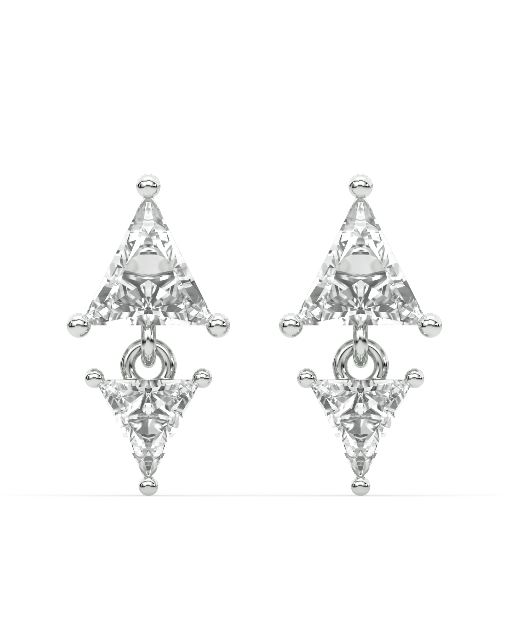 Inverse Triangle Solitaire Stud Earrings in 92.5 silver with rhodium plating and 5A+ zirconia stones. A modern geometric triangle design with solitaire sparkle, perfect for everyday minimal elegance.