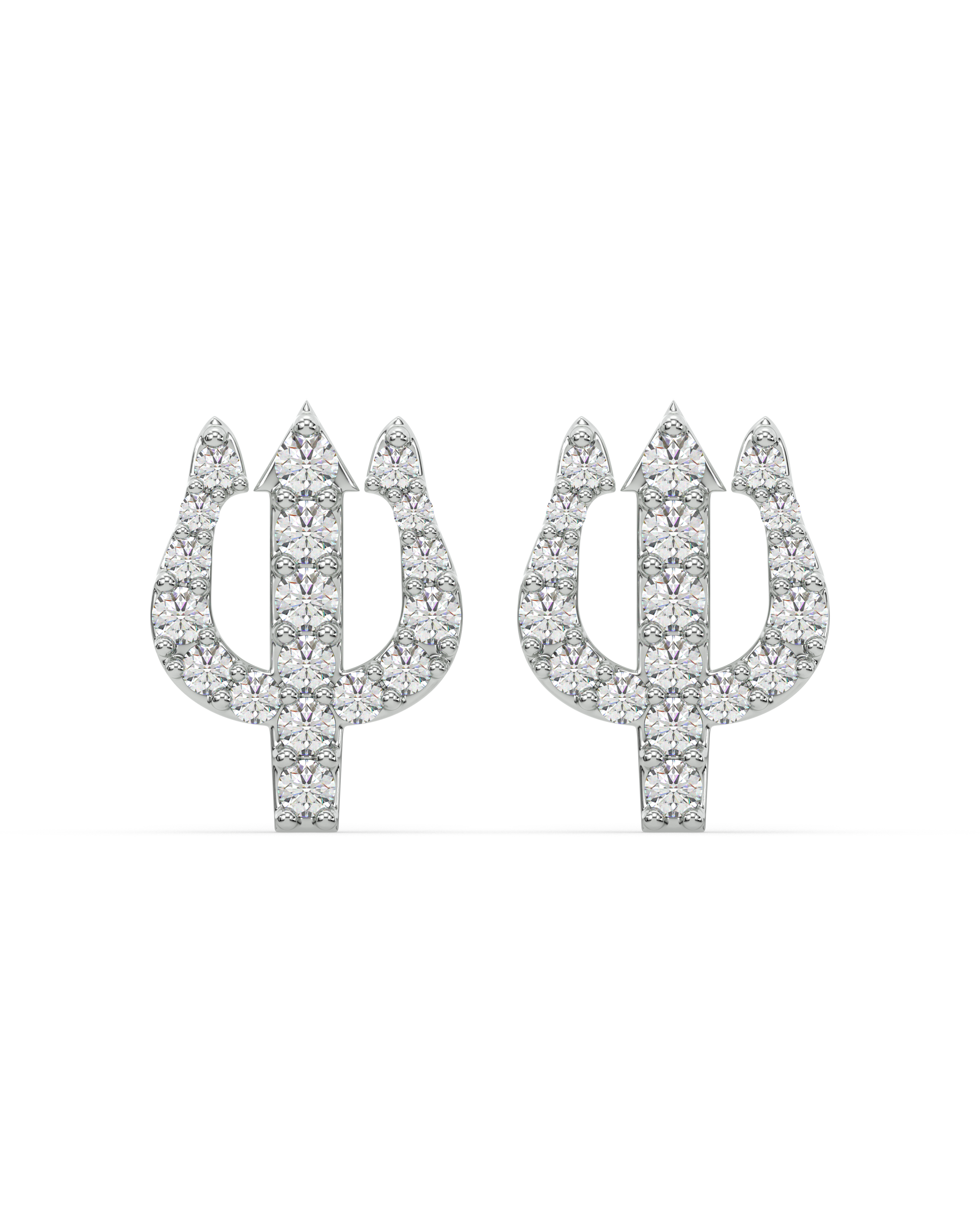 Trishul Pave Stud Earrings in 92.5 silver with rhodium plating, featuring sparkling 5A+ zirconia stones. Symbolic and stylish, perfect for festive wear or gifting.