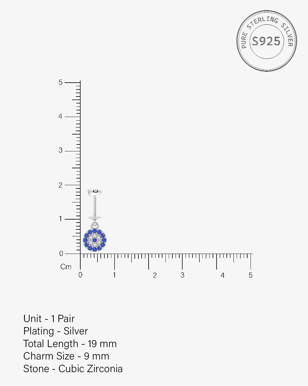 Turkish Leu Stones Hamsa Helix Hanging Earrings in 92.5 sterling silver with rhodium plating and 5A+ zirconia stones. Hamsa-inspired design with Turkish stones provides sparkling detail, protective symbolism, and elegant movement for helix piercings, perfect for layered styling or gifting.