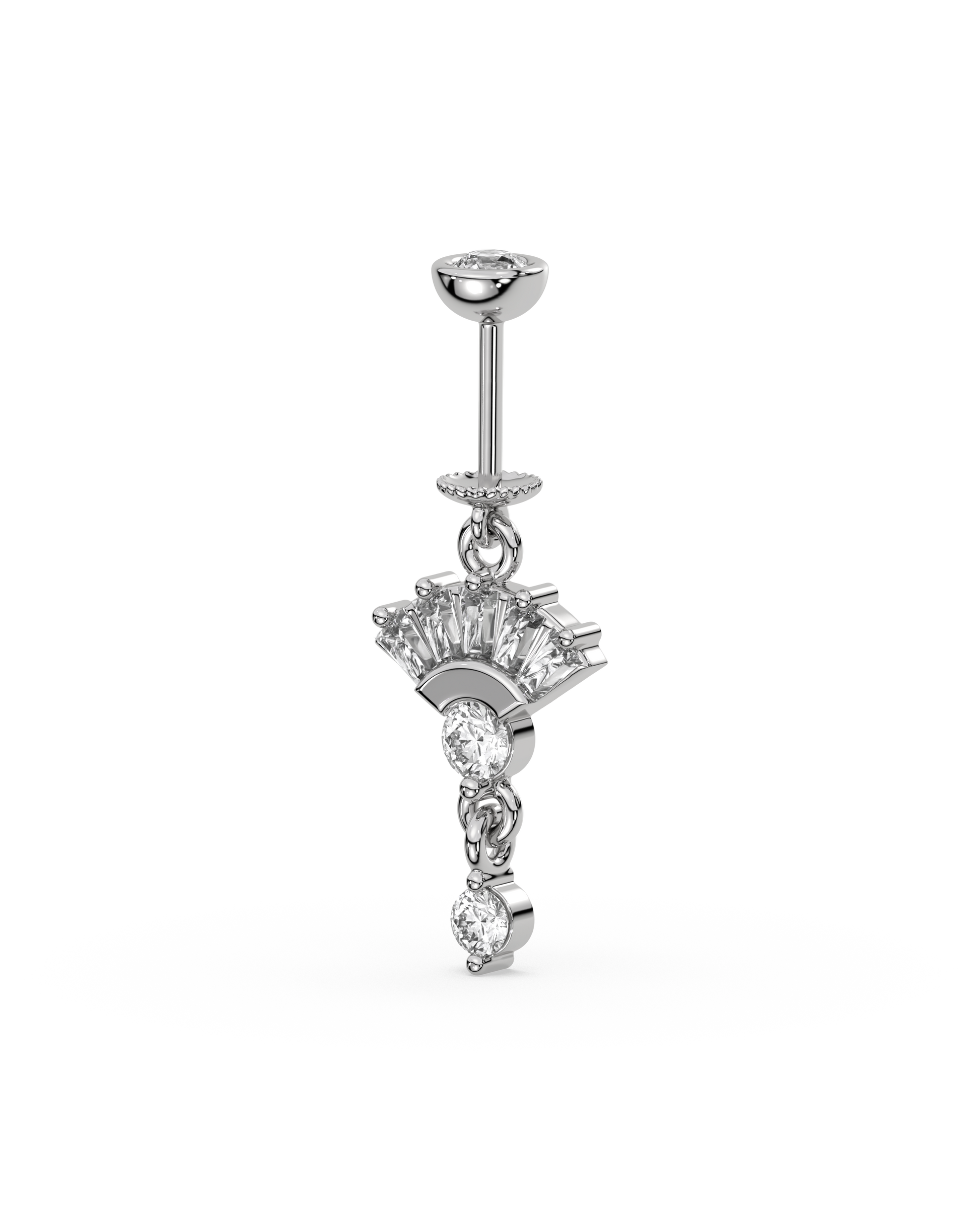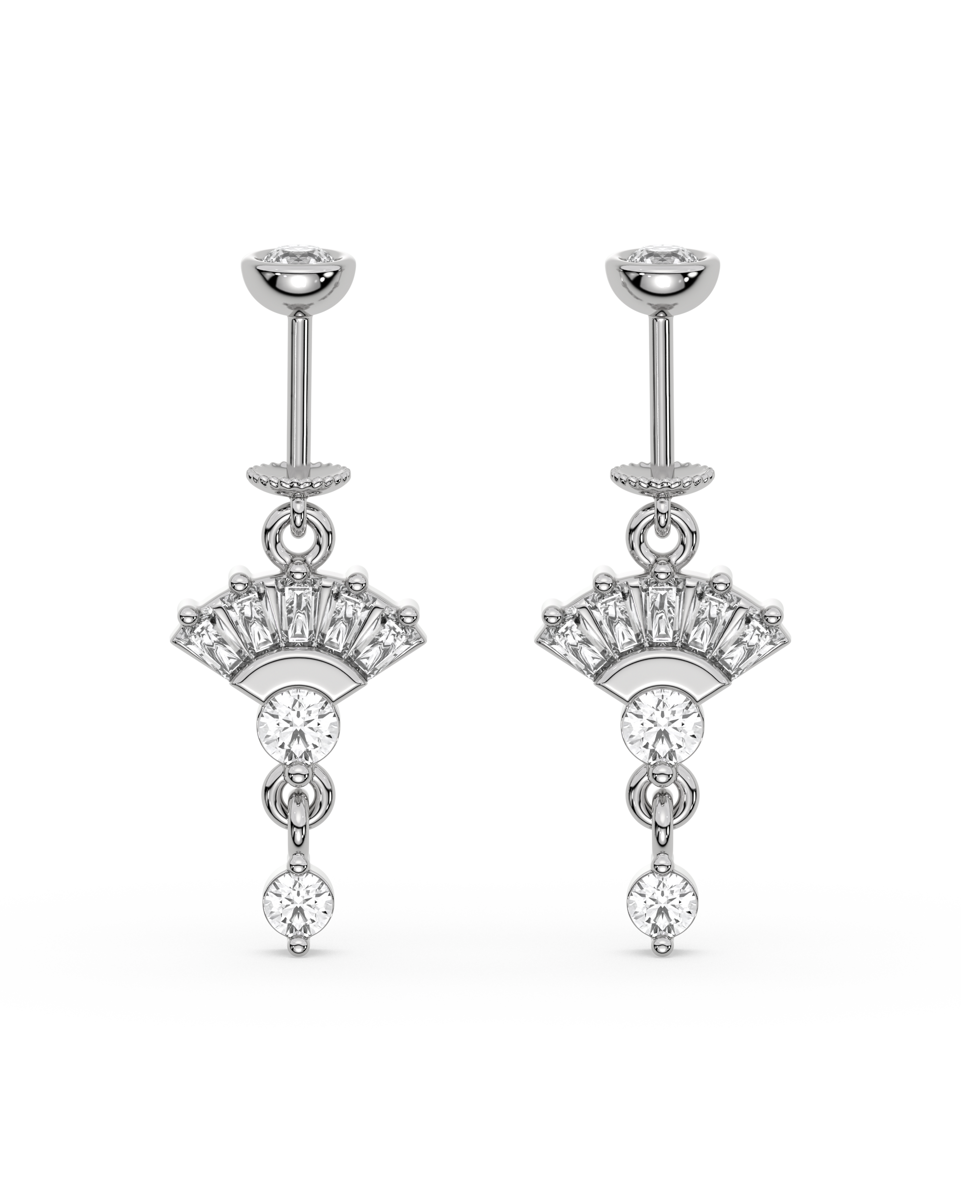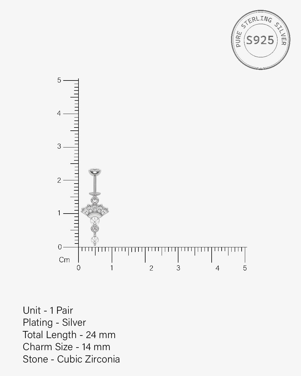 Zirconia Umbrella Helix Earrings in 92.5 sterling silver with rhodium plating and 5A+ zirconia stones. Shimmering umbrella motif adorned with zirconia creates graceful movement, luminous elegance, and stylish sophistication for helix piercings or curated layered ear jewelry looks.