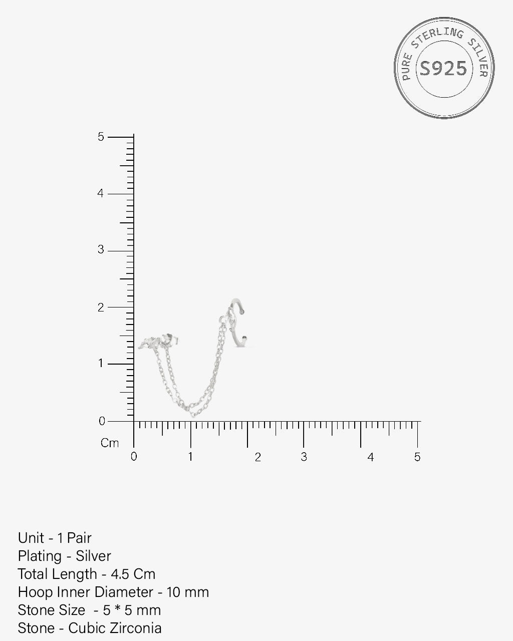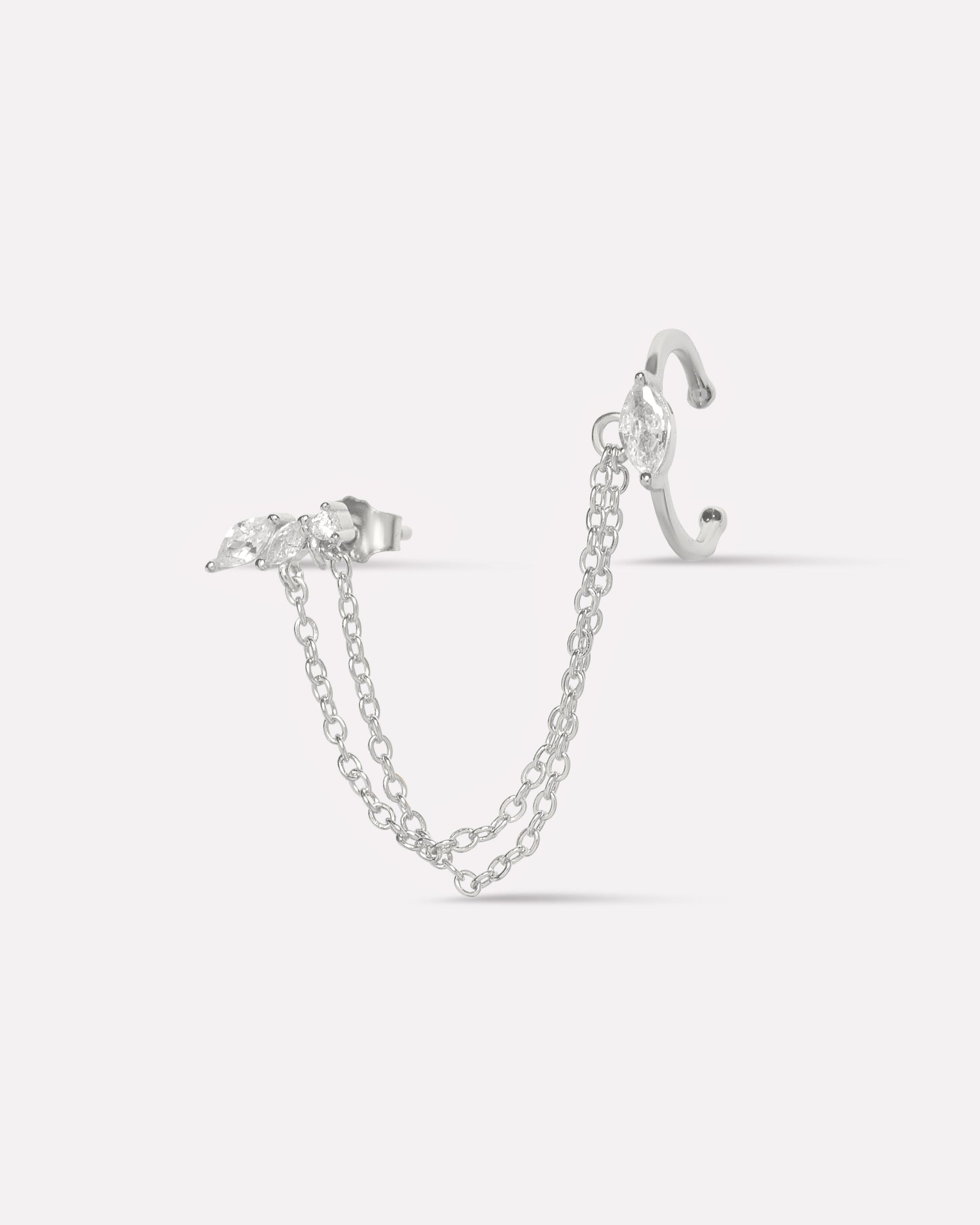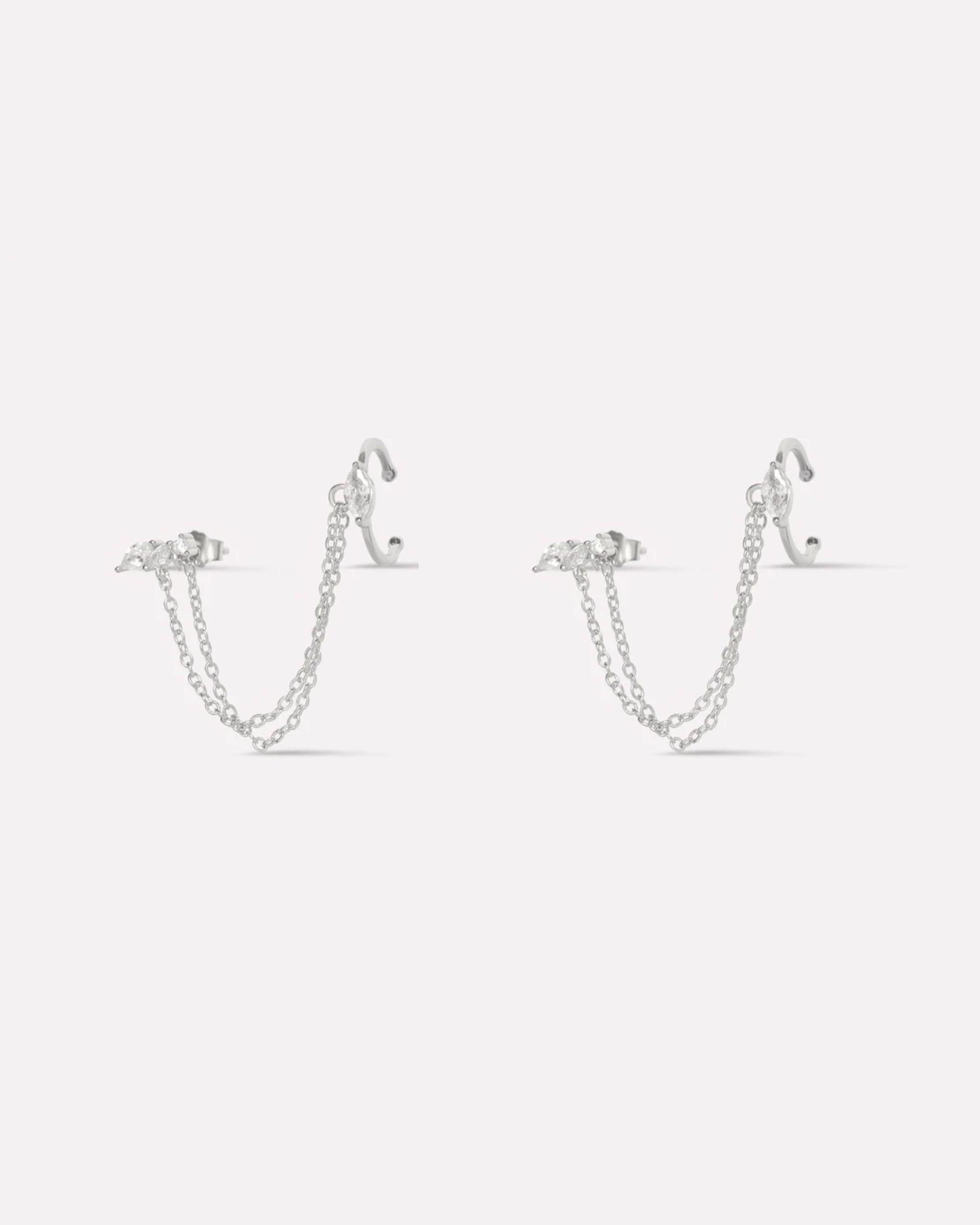 Victoria Chain Connector Earrings in 92.5 sterling silver with 5A+ zirconia stones. Rhodium plated, featuring elegant layered chain design for modern sparkle, perfect for daily wear, layering, or gifting.