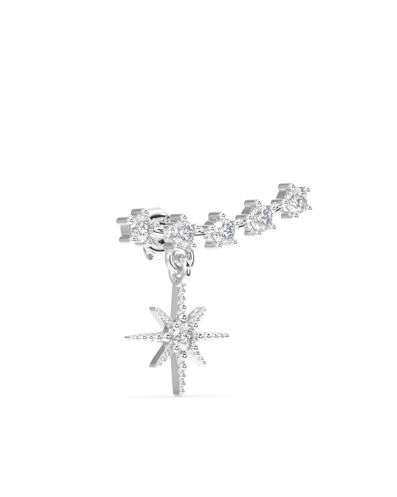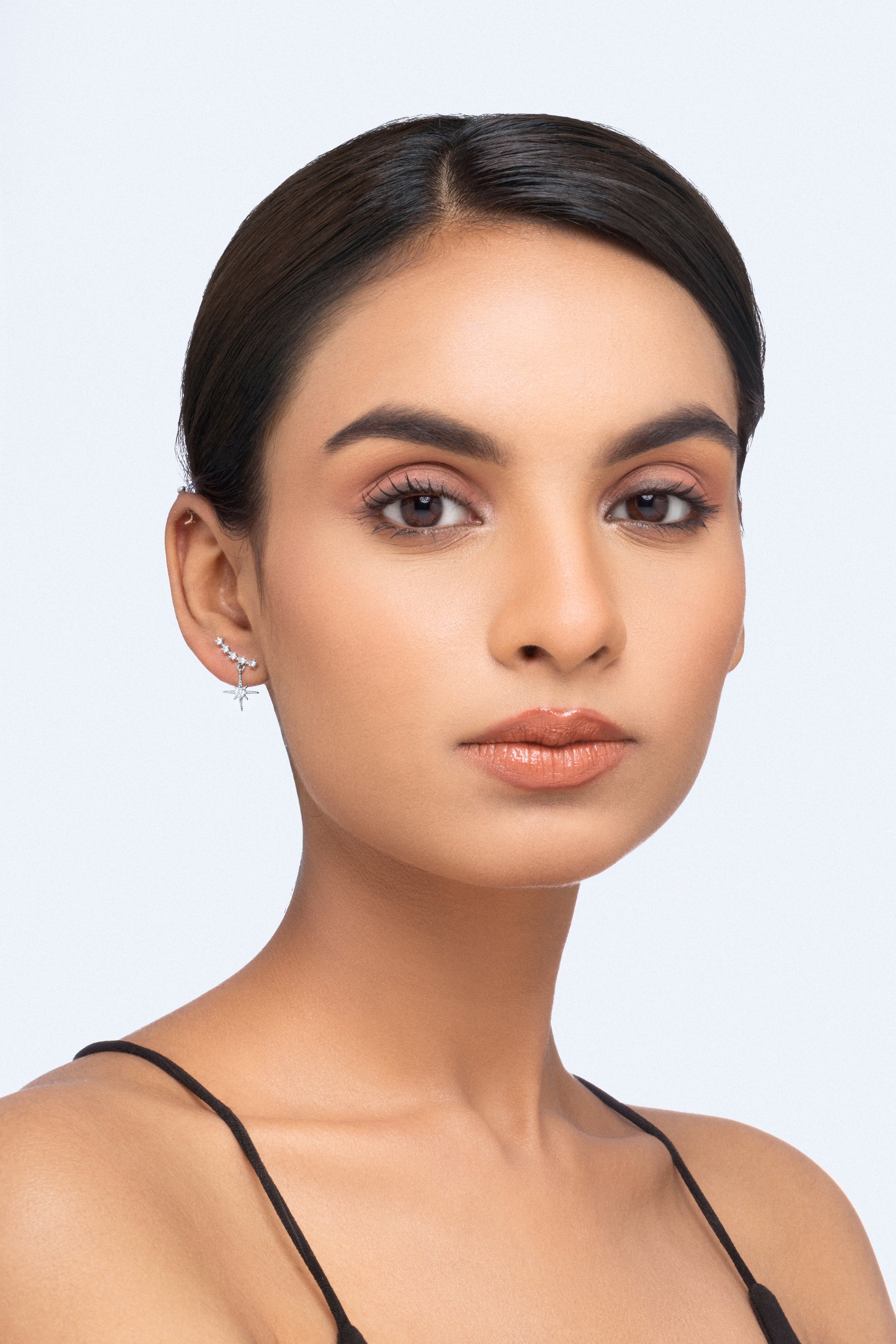 Multi Aligned Zircon Climber Stud Earrings in 92.5 silver with rhodium plating and 5A+ zirconia stones. A modern climber silhouette sparkling with brilliance, adding chic style and shine to your jewelry collection.