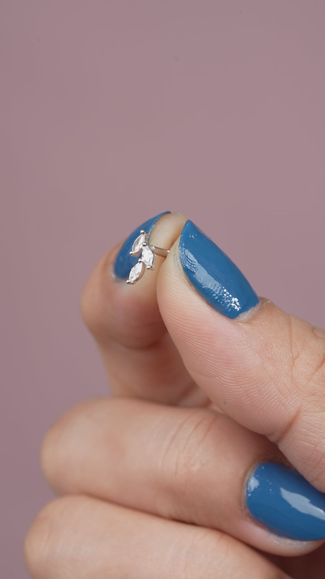 Zirconia Leaflet Climber Flat Back Screw Stud Earrings