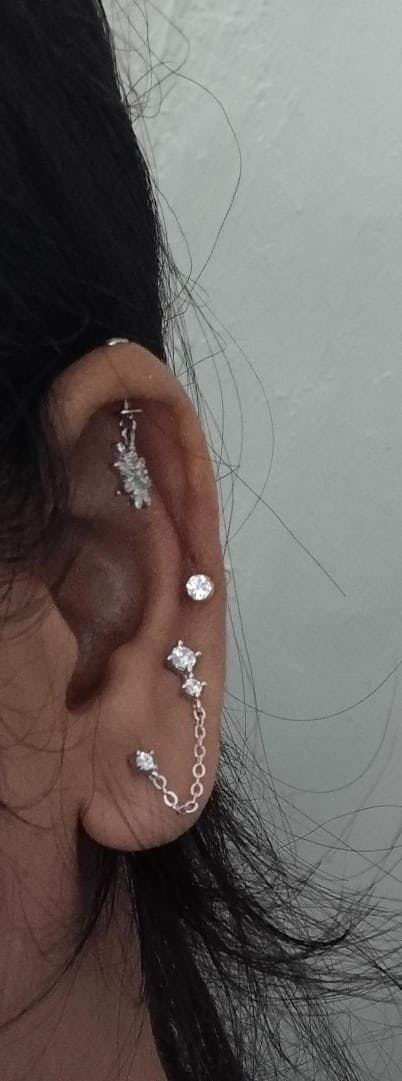 Zirconia Three Stone Chain Connector Earrings
