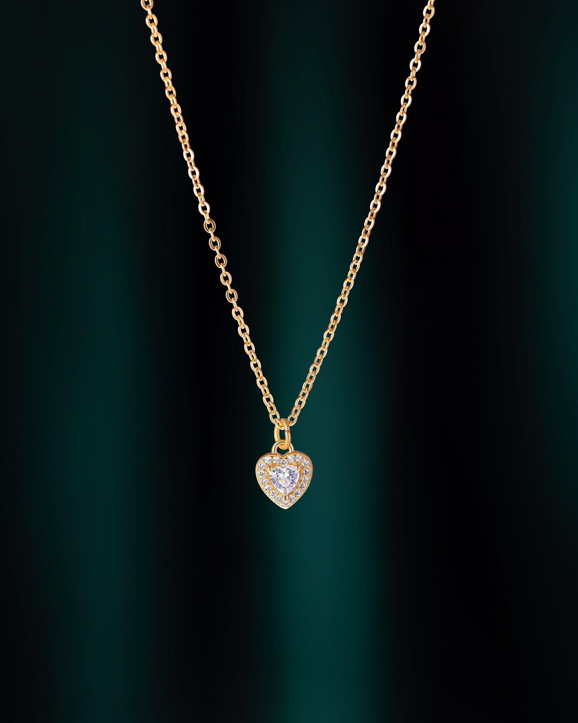 Solitaire Heart Charm Necklace - 18K Gold Plated